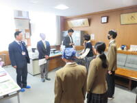 9/30(火)に本校校長室にて令和7年度日本教育公務員弘済会学校図書助成事業贈呈式を行い、3学年の生徒が代表として参加しました。
